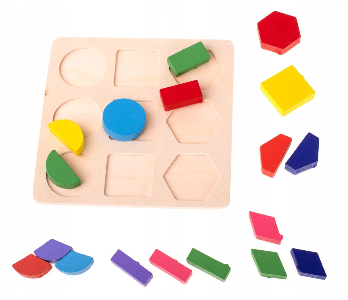 Drewniana zabawka edukacyjna dopasuj kształty 18 elementów